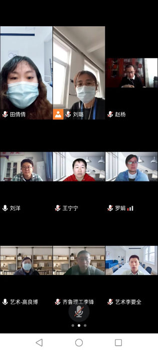 更新时间:2022-03-31 09:38 3月30日,艺术学院召开线上教学专题研讨会,艺术学院院长张胜利,各专业主任、骨干教师及教学科全体工作人员参加了本次研讨。会议由教学院长高良博主持。