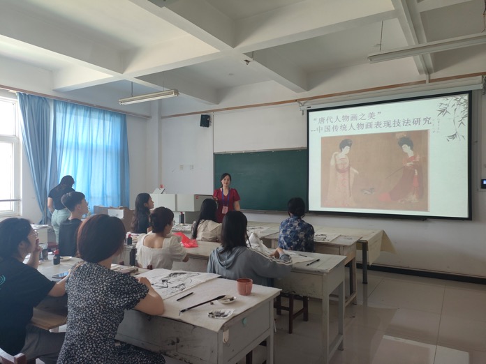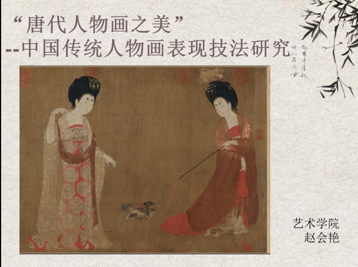更新时间:2023-06-22 10:36 6月21日,艺术学院举办“唐代人物画之美”——中国传统人物画表现技法研究专题讲座,讲座由艺术学院赵会艳老师主讲。