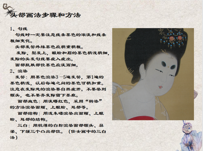 讲座中,赵会艳老师向同学们讲述了大唐时期的历史背景、文化和艺术,从工笔人物画的特点和技法出发,介绍了工笔人物画的创作特点和技法,以及传统工笔人物画的绘制步骤,并通过图片和视频等形式进行了现场演示,重点讲述了大唐时期工笔人物画的特点、传统工笔人物画的特点和技法,强调了工笔人物画在大唐时期的重要地位和影响力,以及对于中华文化的珍贵贡献等内容。