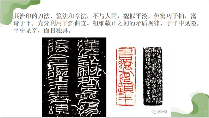 黄牧甫近法皖、浙大家,远宗古玺、汉印,兼取金石文字素材,受启迪于邓、赵的创作思想与方法,并加以融会贯通,拓展、创造,最终形成雅正、雍容的篆刻艺术风格,从而确立了“黟山派”的印风。本次讲座,既丰富了同学们的篆刻史论知识,又提升了对篆刻艺术的认知及审美鉴赏能力,使同学们受益匪浅。