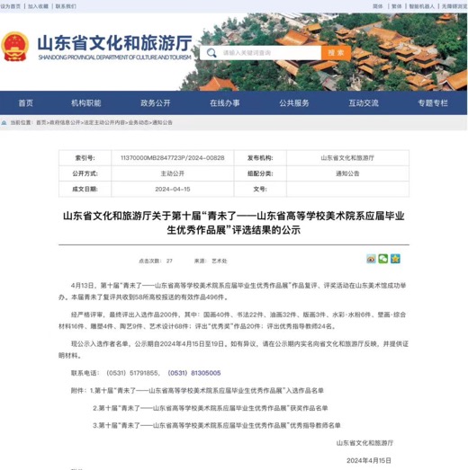 月13日,山东省文化和旅游厅举办的第十届“青未了—山东省高等学校美术学院应届毕业生优秀作品展”进行复评。经专家评审,我校艺术学院学子凭借独特的设计构思与扎实的书法功底成功入展。
