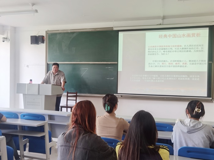 更新时间:2024-04-25 14:49 4月24日,艺术学院面向2021-2023级中国画专业学生举办《经典山水画赏析》专题讲座,讲座由周宗亚副教授主讲。